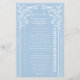 Le "Light Blue Romance and vintage sophistication" est une étonnante gamme de papeterie mariage qui respire le raffinement et l'amour. Cette collection comprend des invitations, des cartes RSVP, des cartes de menu et des cartes de place, le tout avec un mélange exquis de typographie moderne et d'élégance classique. L'arrière - plan bleu doux aux motifs floraux blancs complexes crée une atmosphère sereine et enchanteresse. Les noms sont écrits dans une police moderne et audacieuse, soulignant l'importance de l'événement. Le reste du texte est dans un script classique et gracieux, créant un contraste harmonieux. Dans l'ensemble, ce design allie magnifiquement typographie moderne et élégance intemporelle, ce qui en fait l'endroit idéal pour toute célébration mariage romantique. Divertissez vos invités avec un jeu amusant de 'She Said, He Said!' Ce jeu passionnant invitation vos invités à répondre à des questions amusantes et intrigantes sur vos préférences, souvenirs et opinions. Discussions amusantes et découvertes extraordinaires vous attendent dans chaque jeu ! F004