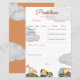 baby shower de prédictions "en construction" carte de jeu avec nuages d'aquarelle gris doux. Les clients peuvent remplir leurs prédictions amusantes sur le bébé, comme la date de naissance, le poids et le nom, tout en appréciant le design apaisant et capricieux des nuages. Une façon ludique et sereine d'ajouter un peu de plaisir à la fête du baby shower!