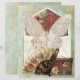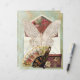 Enveloppe vintage ouverte avec insert, Papier papillon, ventilateur victorien, boîte casquette sur or et vieux papier vert. Vieux papier or et vert à l'envers