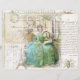 Belle éphémère collée du 18ème siècle Lady assise avec un livre contre un arrière - plan de l'écriture française, la Tour Eiffel, et une abeille (symbole de la France). Le dos est recadré de sorte que la figure semble plus grande.