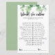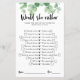 Jeu de bridal shower "Préférerait-elle" avec eucalyptus, Jeu de bridal shower Préférerait-elle, Jeu de fête de mariage avec eucalyptus et verdure, Activité de bridal shower imprimable minimaliste