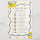 Faites de votre thème principal de douche nuptiale un plaisir supplémentaire avec cette Fête des mariées personnalisée Citron bleu He Said She Said Game! Doté d'une charmante décoration citron, ce jeu est parfait pour une fête de citron de douche à la nuptiale. En plus du thème de la douche au citron, il garde les clients divertis tout en ajoutant une touche design. Idéal pour ceux qui recherchent des idées de douches nuptiales à thème citron, des idées de douches nuptiales à thème citron italien, ou des idées de douches nuptiales d'été !