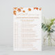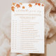 Ajoutez une touche amusante à vos perles et à votre thème de douche de mariée de Prosecco avec ce jeu Personnalisé Fête des mariées d'automne "Qu'a-t-il dit?". Ce jeu de douche nuptiale élégant, idéal pour une soirée à thème perle ou une soirée nuptiale, vous permettra de deviner les réponses du marié pour un moment léger. Une activité charmante pour ceux qui recherchent des idées de douches nuptiales avec une touche d'automne !