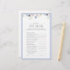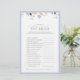 Pour les douches nuptiales qui mélangent sophistication et connexion authentique, ce jeu bien conçu invitations invités à réfléchir sur ce qui fait la mariée vraiment elle. Encadré dans un bleu poussiéreux doux aux délicats accents floraux, il transforme un brise-glace classique en un moment de sens. Utilisez-le pour ouvrir des conversations, ancrer les paramètres de place, ou inclure dans les sacs de faveur comme un gardien de jour. Convient tout particulièrement aux douches intimes où chaque invité tient une partie spéciale de l’histoire de la mariée. Disponible sur demande pour des suites personnalisées ou assorties. Copyright Anastasia Surridge, tous droits réservés.