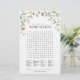 Jeu de douche nuptiale moderne et élégant "Word Search" avec des fleurs sauvages d'été aquarelle tels que pois doux, lupines, snapdragons, et plus, dans des tons lumineux et estivaux de rose, lilas, lavande, jaunes, bleus et feuilles botaniques verts délicats. Personnalisez votre nom de douche nuptiale en noir, accentué par une belle calligraphie moderne lettrée à la main. Partie d'une suite coordonnée. Voir la suite ici : https://www.zazzle.com/elegant_summer_wildflower_floral_bridal_shower_invitation-256486599269422892 Contacter le concepteur pour les produits correspondants. Copyright Anastasia Surridge pour Invitations élégants, tous droits réservés.