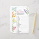 Baby Animal Name Fiche de jeu, avec instructions de jeu modifiables - jeu de quiz amusant à jouer à votre baby shower fleur sauvage. Ce joli design de fleurs sauvages aquarelle a des lettres blanches et élégant script avec des fleurs de prés délicates en rose lilas orange et jaune. Design floral féminin pour baby shower fille. Parcourez ma boutique, ma collection Meadow Fleur sauvage ou envoyez-moi un message pour les objets correspondants.