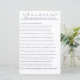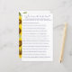 Faites plaisir à vos invités avec un charmant jeu de douche de mariée sur le thème du tournesol Fleur sauvage, "How Well Do You Know the Bride?" Ce jeu engageant est une façon merveilleuse d'ajouter du plaisir et du rire à la douche nuptiale, en testant à quel point les invités connaissent la future mariée. Doté d'un beau design fleur sauvage et tournesol, ce jeu est parfait pour un thème de douche nuptiale rustique ou d'inspiration nature. Demandez à vos invités de répondre aux questions sur la mariée et de voir qui la connaît le mieux avec le jeu de douche nuptiale "How Well Do You Know the Bride?".