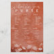 Ajoutez le rire et la compétition amicale à votre douche nuptiale avec cette carte de jeu "What’s in Your Purse?" magnifiquement conçue. Doté d'un arrière - plan d'aquarelle rouille moderne et de fines fleurs blanches, les clients retirent les articles de leur sac à main pour les faire monter. La personne ayant le score le plus élevé gagne ! Un charmant brise-glace qui se marie parfaitement avec des célébrations sur le thème du boho, de la chute ou de la terre cuite.