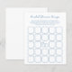 Ajoutez un peu de plaisir à votre douche de mariée à thème bleu avec ce charmant Fresh Off The Market, Fête des mariées Bingo! Les clients aimeront jouer à des jeux de douche avec cette activité ludique et interactive, parfaite pour une fête de la douche nuptiale. Ces cartes de jeu font partie d'une collection de douche nuptiale avec des articles de coordination disponibles. Nous vous encourageons à explorer l'ensemble pour créer une célébration parfaitement adaptée.