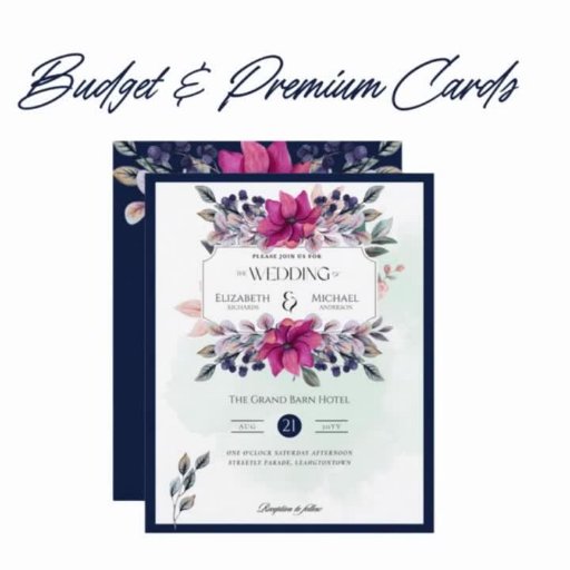 Belles invitations de mariage floral Fuchsia Pink et Navy Blue.