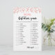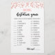 Achetez ce jeu et profitez de la carte de jeu Animal Gestation de haute qualité pour votre événement! Combien de temps chaque animal est-il enceinte ? Activités baby showers ! Conception rose de confettis en or. RÉPONSES : Cerf - D, Kangourou - K, Lapin - J, Ours - A, Camel - L, Fox - E, Puma - I, Dauphin - C, Lama - H, Chèvre - G, Éléphant - F, Chat - B