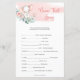 Girl Elephant Eucalyptus Nom That Song Game for baby shower, Ce Baby shower fantaisiste de style boho a présenté de l'aquarelle peinte à la main mignonne petite fille éléphant assise sur la couronne fraîche de verdure eucalyptus et des fleurs rose rousse mélangé - ce qui rend cet ensemble adapté à un Baby shower fille. Utilisé police de script de calligraphie moderne, renforce encore l'apparence bohème et donne plus de jeu et de rendre l'invitation si remarquable. L'ensemble est habillé d'un arrière - plan rose pastel couleur aquarelle et a l'air si joli. Oui, vos invités seront vraiment fascinés - envoyez-leur cette invitation vraiment impressionnante et sûrement votre Baby shower Party sera dans le souvenir pour longtemps. Dans ce design exquis, nous avons préparé tous les éléments nécessaires à votre fête de Baby shower de fille à thème de girafe - tels que des jeux, des affiches de bienvenue, des panneaux de table et bien plus encore, afin que vous puissiez obtenir un ensemble complet de cet adorable design bohème avec un mignon petit éléphant de fille sur la couronne d'eucalyptus verdoyante et des fleurs roses vertes mélangées. Contactez-moi pour les articles correspondants ou pour la personnalisation, Bébé Rose Blush ©