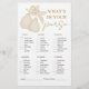 Continuez à vous amuser avec ce jeu de douche à nuptiale "What’s in Your Purse". Avec ses élégantes peintures de poires et ses détails de pays français, cette activité ludique fait en sorte que les clients vérifient leurs bagages pour obtenir des points au quotidien et des objets inattendus. Personnalisez avec le nom de la mariée pour une touche réfléchie. Coordonné avec la collection complète de douche de mariée Perfect Pear, y compris les invitations, la décoration et d'autres jeux assortis.