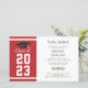 Ajoutez votre année de graduation, le nom et les détails du lieu avec date à cet arrière - plan moderne en rouge et blanc avec l'invitation de la soirée de graduation de typographie noire en utilisant notre bouton "Personnaliser". Invitations simples de la fête de remise de diplômes avec un défilement et une casquette de graduation avec lettrage moderne.