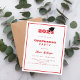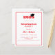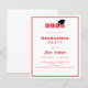 Une invitation moderne et design à la remise des diplômes. Pour lui et elle. Arrière - plan blanc, texte rouge et cadre. Une casquette noire de graduation. 1 feuille = 1 invite imprimé bord à bord.