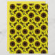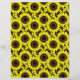 Papier dans un motif de grands tournesols jaunes dorés, avec centres chocolat profond, accentué de noir