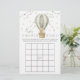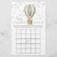 Jeu classique sophistiqué "Bingo" conçu pour une douche pour bébé garçon, orné d'un charmant ours en peluche volant avec une sauge verte montgolfière et message "L'aventure attend". Engagez vos invités avec ce jeu délicieux, parfait pour ajouter du plaisir et de l'excitation à votre célébration tout en créant des souvenirs chéris.