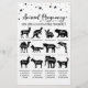 Achetez ce jeu et profitez d'une carte de Grossesse animale noir et blanc monochrome de haute qualité pour votre événement! Combien de temps chaque animal est-il enceinte ? Activités baby showers ! RÉPONSES : Cerf - 8 mois, Kangourou - 40 jours, Lapin - 1 mois, Ours - 7 mois, Camel - 14 mois, Renard - 51 jours, Puma - 3 mois, Dauphin - 1 an, Lama - 11 mois, Chèvre - 5 mois, Éléphant - 22 mois, Chat - 2 mois
