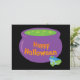 Cette illustration éffrayante et mignonne de chaudron présente un chaudron en caricature violette rempli de brin de sorcière verte! Le pot dit "Joyeux Halloween" en lettres orange déplaisantes et ghoulish et a un crapaud bleu et vert perché à côté ! Cet art amusant et original d'halloween est le cadeau parfait à acheter pour quiconque aime les choses éffrayantes, sorcières, grenouilles et crapauds et halloween! Trick ou régal !