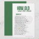 Add a fun and elegant activity to your bridal shower with this How Old Was the Bride wedding game featuring a chic preppy tennis theme. Guests guess the bride’s age at memorable moments throughout her life, while the included answer key provided by the bride makes hosting simple and stress-free. Designed with a clean white front and premium solid green back, this stylish game is perfect for tennis-themed bridal showers, engagement parties, and country club weddings.