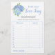 Ce jeu de douche nuptiale est un jeu de chanson d'amour. L'hôtesse joue des extraits de chansons d'amour. Les invités écrivent le nom et l'artiste sur les cartes. Les points sont notés pour chaque réponse correcte. Le joueur ayant les points les plus élevés gagne un prix. Ces cartes présentent un design floral hydrangea bleu aquarelle. Personnalisez ces cartes avec le nom de la mariée sur le dos. Éléments correspondants disponibles.