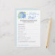 Cette carte de jeu de douche nuptiale est Comment connaissez-vous bien la mariée? Il a 10 questions auxquelles les joueurs peuvent répondre. Le design comprend des fleurs d'hydrangée bleu aquarelle. Personnalisez le dos des cartes avec le nom de la mariée. Produits correspondants disponibles.