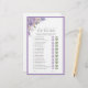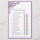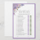 Lavande & Floral Violet Il Dit Elle A Dit Carte de Jeu Plaisir vos invités avec cette carte de jeu lavande et fleurie violet "He Said She Said - Who Was First". Cette activité ludique invitation chacun à deviner qui a pris la tête dans des premières mémorables, tout en profitant des fleurs d'aquarelle magnifiquement détaillées en violet, lilas et verdure, encadrées par une bordure violette coordonnée. Parfait pour les douches nuptiales, les mariages et les fêtes à thème pour les couples, il allie divertissement et élégance florale. Copyright Anastasia Surridge, tous droits réservés.
