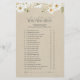 Joueusement élégant, ce jeu classique capture l'humour doux des histoires d'amour en cours. Les clients devinent la moitié du couple qui a dit ou fait ce qu'il a fait en premier, ancrant les lunettes dans un design magnifique. Le motif marguerrier et l'arrière - plan kraft doux donnent à ce jeu une authenticité fraîche du terrain tout en maintenant une esthétique polie. Un choix parfait pour des réunions détendues et surélevées. Copyright Anastasia Surridge, tous droits réservés.