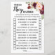Ils Préféreraient Marsala Floral Fête des mariées Jeu. Modifier le libellé pour concevoir. Pour une personnalisation supplémentaire (couleur de police, style de police ), cliquez sur Personnaliser, faites défiler vers le bas et cliquez sur le lien "Modifier en utilisant l'outil de conception". ** Vérifier la collection pour tous les designs correspondants ** COMMENT JOUER : Les invités vérifieront le choix qu'ils pensent que la mariée et le marié choisirait