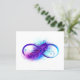 Infinity symbole with a beautiful feather painted in purple and blue bright colors on white background
