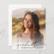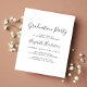 Élégante invitation à la fête de remise des diplômes avec la photo de la grad superposée avec "diplômé" dans un script moderne et leur nom et année de classe dans la simple typographie. Au contraire, ajoutez les détails de la fête principale.