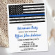 Ligne Bleue Mince Invitations de retraite de la police ou Invitations de la fête de graduation de la police. Célébrez des années de service dédié, ou célébrez votre nouveau diplômé de l'académie de police, amis et famille invitations à votre parti d'application de la loi avec ce bois rustique Mince Ligne Bleue Drapeau Police Retraite Invitation et la police Invitation de diplôme de l'académie de police - Etats-Unis Drapeau américain dans les couleurs de la police Drapeau, conception en détresse. Ces cartes d'invitation à la retraite de la police budgétaire sont une alternative aux invitations à la retraite gratuites de la police. Consultez notre collection pour les cadeaux de retraite de la police, les cadeaux de fin d'études de la police, les faveurs de la fête et les fournitures. DROIT D'AUTEUR © 2021 Judy Burrows, Black Dog Art - Tous droits réservés. Invitation à la retraite de la police budgétaire Ligne bleue mince