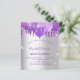 Un arrière-plan élégant de couleur argentée. Décoré de paillettes et de ballons violets. Personnalisez et ajoutez un nom et les détails de la fête. Le nom est écrit avec une police de caractères manuscrite