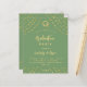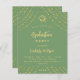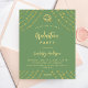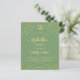 Un arrière - plan vert sage décoré d'étoiles faux or et d'un casquette. Personnalisez et ajoutez un nom, les détails de la fête et l'année. Le texte Graduation et le nom sont écrits avec un script de style à la main moderne. 1 feuille = 1 invite imprimé bord à bord.