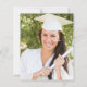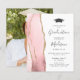 Cette invitation à la fête de graduation 2025 branchée présente une image aquarelle de géode rose vif avec des reflets de parties scintillant en faux or. Le mot "Graduation" et le prénom du diplômé apparaissent dans l'élégant script d'écriture grise au fusain sur un arrière - plan blanc, ainsi que le casquette de tableau de mortier et les détails de la fête dans les polices sans serif et italique. Remplacez facilement l'image de l'échantillon au dos par une photo verticale du diplômé.