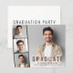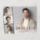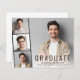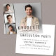 Faire-part de remise de diplômes minimaliste moderne et abordable avec la photo du diplômé superposée avec une bande de trois petites photos de carré et "Graduate", leur nom, l'école et l'année de classe en simple typographie. Ajoutez les détails de la fête de remise de diplômes à l'envers.