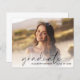 Élégante invitation à la fête de remise des diplômes, avec la photo de la grad superposée de "diplômé" dans un script moderne chic et leur nom et année de classe en lettres simples. Au verso, ajoutez les détails de la fête de remise de diplômes. Ce papier semi-brillant budgétaire est similaire en poids au papier photo. Une version plus grande de 5x7 traditionnelle carte stock est également disponible (message nous pour le lien).