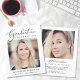Élégante faire-part de remise de diplômes et invitation à la fête avec "Graduation Celebration" en écriture et typographie élégante, sa photo et son nom, l'école et l'année de classe en typographie moderne simple. Au verso, ajoutez une autre photo et les détails de la fête de remise des diplômes.