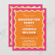 Invitation de remise des diplômes photo rose orange rétro gribouillée ondulée à petit budget