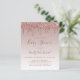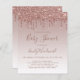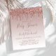 Cette invitation baby shower branchée présente une bordure de parties scintillant rose brillante dégoulinante sur un arrière - plan rose en or sombre. Les mots "Baby shower" et le nom de la maman-to-be apparaissent dans un script d'écriture rose foncé, avec le texte restant dans le rose foncé sans serif police.