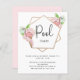 Een uitnodiging van een poolpartij met roze flamingos. Pas een naam en partijdetails aan en voeg deze toe. Ideaal voor een zomer, zwembad of 4de juli feest.