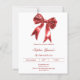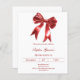 Un arrière - plan blanc, décoré d'un grand arc rouge. Personnalisez et ajoutez un nom et des détails du parti. 1 feuille = 1 invite imprimé bord à bord.