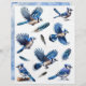 Ce papier recto-verso, qui combine les Blue Jays volant et reposants et leurs plumes, est parfait pour les raclettes, les journaux à puces, la fabrication de cartes, les collages, et plus encore.