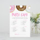 Recherchez les objets de la liste dans votre sac à main. La personne qui a le plus de points est le gagnant! | Ajoutez cette amusante carte de jeu "What in your purse" à votre baby shower. Cette carte de jeu trivia baby shower présente des beignets d'aquarelle rose, blanc et chocolat avec des arrosées colorées. Personnalisez en ajoutant des noms, des événements et des dates. Ce jeu de sacs à main est parfait pour It's a Girl baby showers.