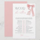 Papier Jeu de baby shower avec un nœud rose