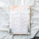 Baby Trivia jeu. Baby shower à thème hivernal avec pins et flocons de neige. Clé de réponse de l'essai sur le bébé : 1. B 2. A 3. A 4. B 5. C 6. A 7. B 8. B 9. B 10. A