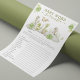 Créez de l'amusement lors d'une fête prénatale avec ce jeu de lettres mélangées sur le thème 'dinosaure aquarelle' ! Faites plaisir à vos proches avec une explosion ludique de couleurs, inspirée par la beauté de la nature. Les gris et les verts doux ajoutent une touche de fantaisie à votre événement. Et qui peut résister aux dinosaures audacieux et énergiques qui donnent vie à ce design ? Les réponses sont disponibles au verso. Pour une personnalisation plus avancée de ce design, sélectionnez simplement le lien "Personnaliser davantage" après la personnalisation !