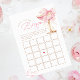 Amusez-vous avec ce joli jeu de Bingo avec un arc rose et une coupe de champagne dorée. Un ajout sucré à votre brunch & douche à bulles nuptiale.
