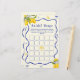 Faites de votre fête un plaisir avec ce Jeu de Bingo de Fête des mariées principal bleu jaune personnalisé! Parfait pour un thème principal de douche nuptiale serrée, ce jeu présente un design citron charmant qui ajoute une touche de fraîcheur à votre événement. Que vous planifiez une fête de citron nuptiale de douche ou que vous cherchiez une inspiration pour le thème de la douche nuptiale citron, ce jeu de bingo est un grand ajout. Idéal pour les idées de douche nuptiale à thème citron, les idées de douche nuptiale à thème citron italien, et les idées de douche nuptiale d'été!