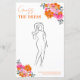 Amusez-vous à votre douche de mariée avec cette carte de jeu "devinez la robe" colorée, avec une jolie silhouette, des fleurs roses et orange vives et un texte modifiable. Personnalisez-la facilement si nécessaire en cliquant sur l'option "personnaliser".